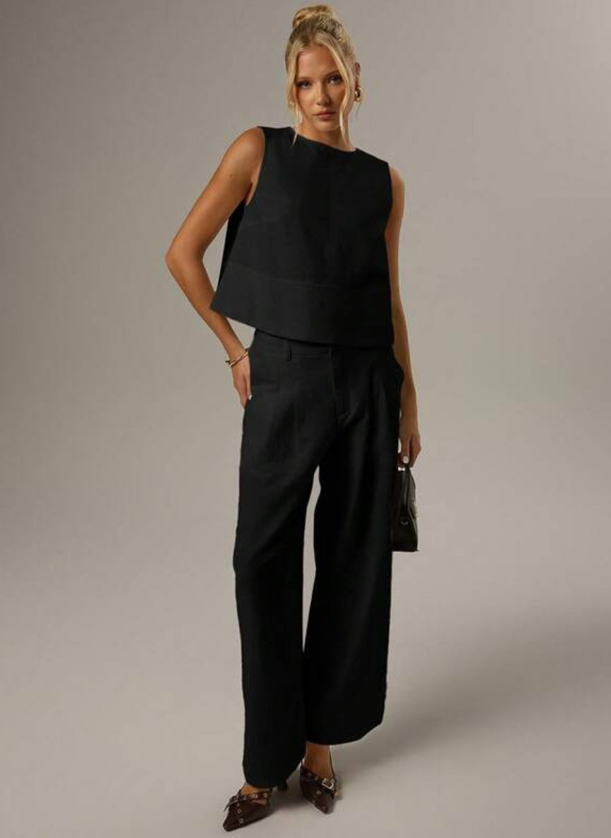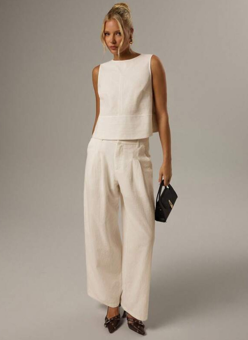 A light and effortless essential for warm days. Crafted from premium linen, this relaxed cropped sleeveless top features a clean round neckline and an easy, boxy fit, perfect with high‑waisted trousers, skirts or shorts.